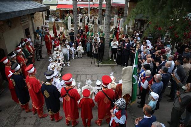 Belediye Caddesi’nde mehter takımı tarafından karşılanan çocuklar, Cumhuriyet Meydanı’nda fotoğraf çektirdikten sonra Şeyh Şaban’ı Veli Külliyesi’ne giderek dua etti.