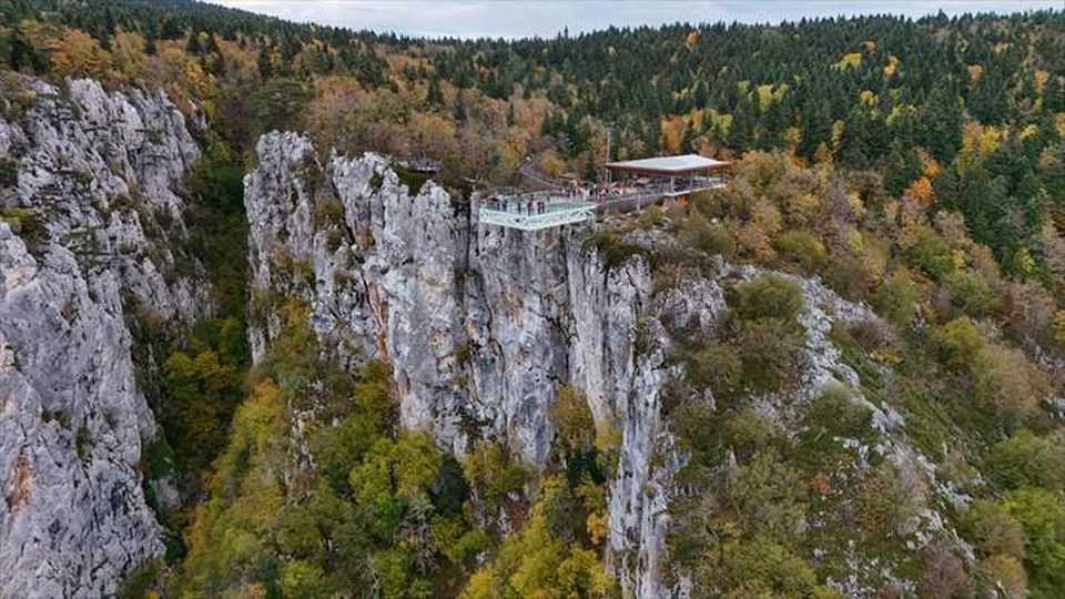 Küre Dağları Milli Parkı’ndaki Çatak Kanyonu’nun yüzeyinden 450 metre yükseklikte yer alan ve Azdavay Belediyesince işletilen teras, sonbaharda yeşilin farklı tonlarına bürünen doğasıyla yerli ve yabancı ziyaretçiler tarafından ilgi görüyor.