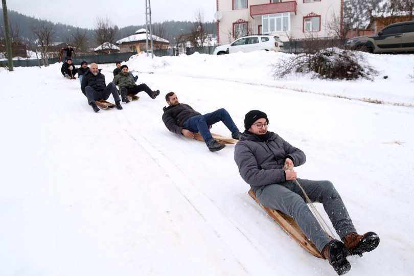 Faruk Çam ise genç yaşlı herkesin eğlendiğini anlatarak, “Burada her sene Muharrem hocam kızak yolu yapıyor. Biz de kızaklarımızı alıp arkadaşlarımızla geliyoruz. Burada kızak yarışları yapıyoruz, çok eğlenceli oluyor. Kastamonu için kar çok özel bir şey. Keyifle eğlenerek kayıyoruz, çok mutlu oluyoruz, deşarj oluyoruz.” ifadelerini kullandı.