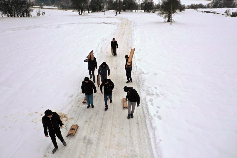 Kızak yapımının dedesinden kalan bir gelenek olduğunu dile getiren Köse, “Dedem yaşarken kızak yapardı, biz de onları izlerdik. Kar yağdığında kızak pisti yapardı. Onlar rahmetli olduktan sonra biz yapmaya başladık. Eskiden daha kalabalıktık ve ayakla kızak pisti yapardık. Şimdi hem daha az kişiyiz hem de kar az. Kar az olduğu için traktörün arkasına bir aparat takıp pisti hazırlıyorum.” diye konuştu.