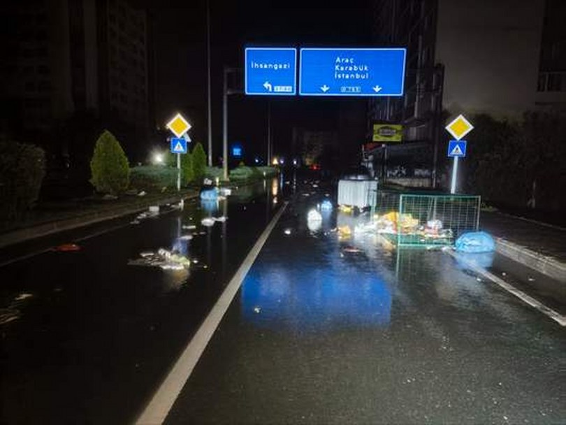 Sağanakla birlikte etkili olan fırtına nedeniyle kentin bazı noktalarında çöp konteynerleri devrildi, bazı alanlarda da su birikintileri oluştu.