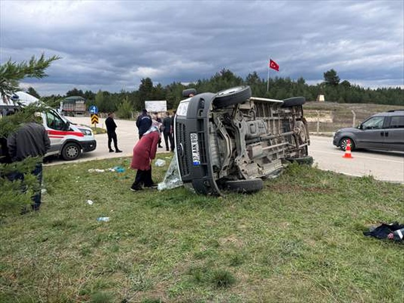 Kazada devrilen minibüsteki 12 ilkokul öğrencisi ile sürücü yaralandı.