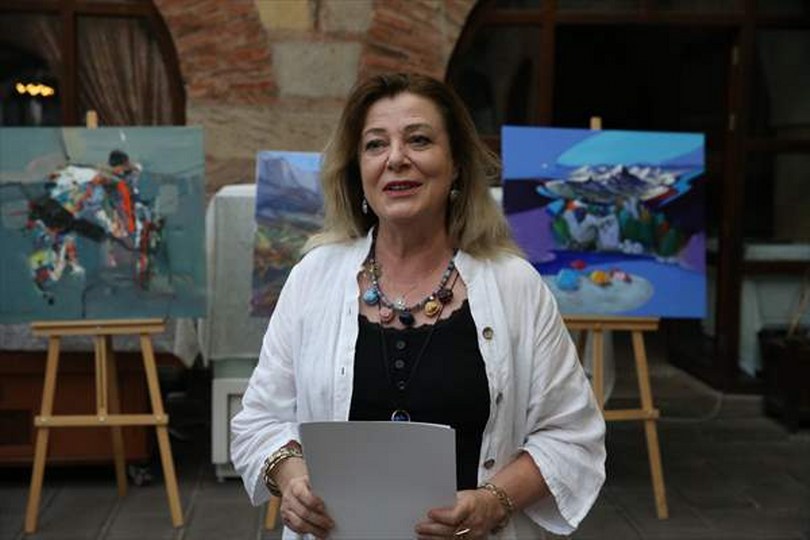 Sanatçıların yaptığı resimlerin yer aldığı sergi, Kurşunlu Han’da düzenlenen törenle açıldı.