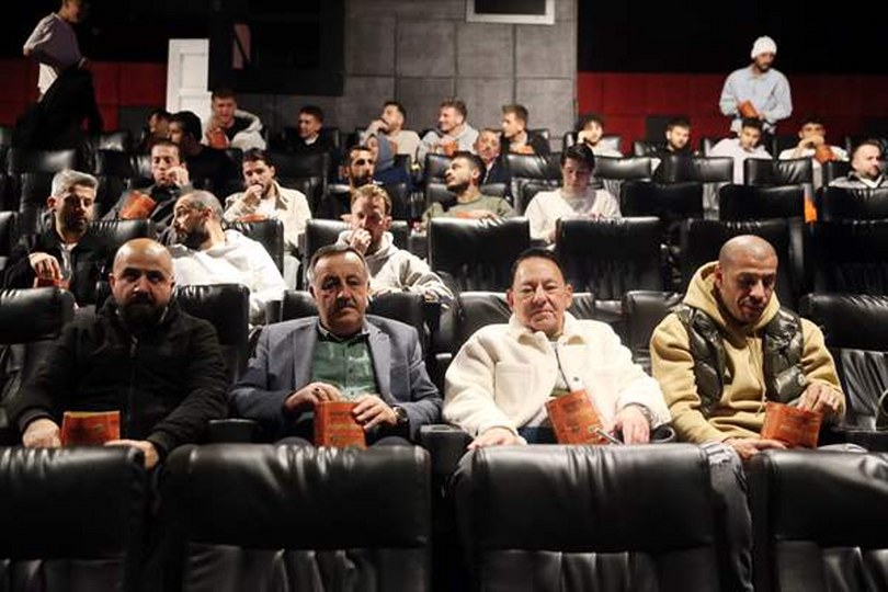 Cide ilçesinde çekilen filmi izlemek için kentteki bir alışveriş merkezinde bulunan sinemaya gelen Kulüp Başkanı Cengiz Aygün ve futbolcular, filmi beğeniyle izledi.