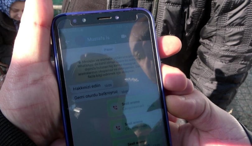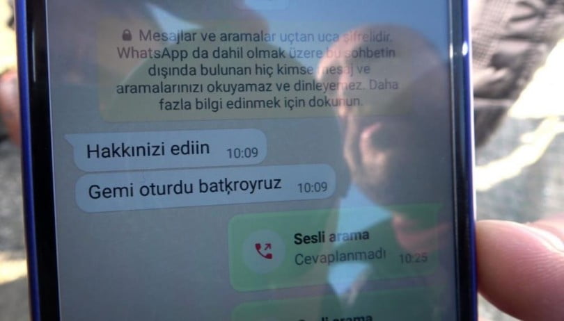 Baba Mustafa Nacar, halen kayıtlı olan mesajına bakarak göz yaşı dökerken oğlundan gelecek umutlu haberi bekliyor. Kayıp mürettebattan Mustafa Nacar’ın babasına yazdığı mesajda, yaşadıkları paniği de gösteren harf hataları dikkat çekerken mesajın alt kısmında ise baba Mehmet Nacar‘ın oğluna ulaşmak için yaptığı ve cevap alamadığı çağrılar yer aldı.