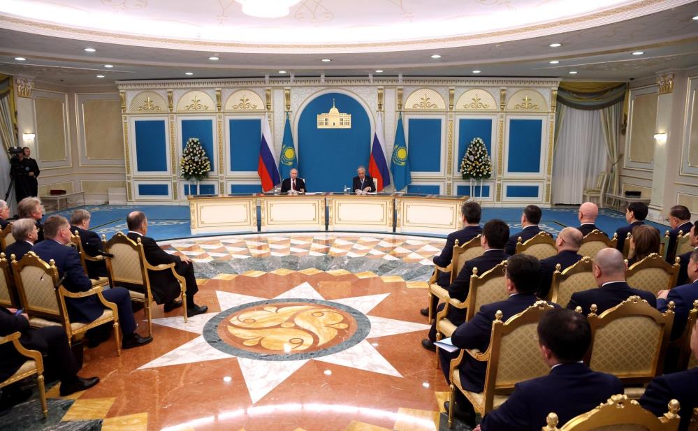 Rusya Devlet Başkanı Vladimir Putin resmi temalarda bulunmak üzere dün Kazakistan’a gitti. Putin ve Kazakistan Cumhurbaşkanı Kasım Cömert Tokayev, iki ülke arasında yeni anlaşmaların imzalandığı görüşmelerin ardından ortak basın toplantısı düzenledi.