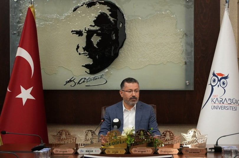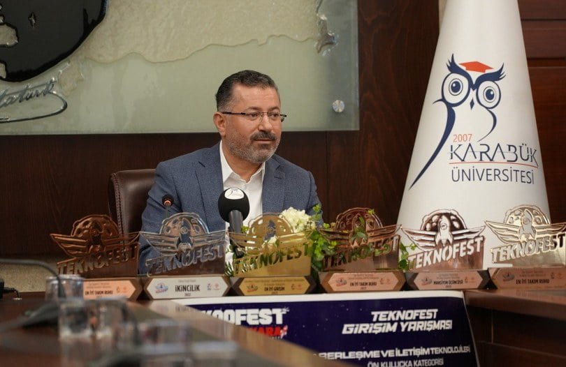 Karabük Üniversitesi Senato Toplantı Odasında gerçekleşen ziyarette konuşan Karabük Üniversitesi Rektörü Prof. Dr. Fatih Kırışık, “TEKNOFEST’e katıldınız, ödüller aldınız, bizi gururlandırdınız. Hepinize çok teşekkür ediyorum. Türkiye’nin teknoloji sahasında ilerlemesi açısından TEKNOFEST çok önemli bir yarışma. Bizim için çok güzel fırsatlar oluşturuyor. Özellikle bizim savunduğumuz bir husus var. Yenilikçi yaklaşımlar geliştirme, yani var olan yaklaşımların ötesinde yenilikçi teknoloji yaklaşımları ve sahayı tamamen değiştirecek yeni bakış açıları geliştirme, bizim için son derece önemli. 21. Yüzyılda artık bambaşka bir teknolojiyle karşı karşıyayız. Endüstri 4.0 denilen bir sistemden bahsediliyor. Dünyanın artık bu sahada büyük değişimler yaşadığını görüyoruz. SİHA mesela sahayı çok değiştiren bir yaklaşım ortaya koydu. Savaşlarda etkin olsun diye üretilen kara araçlarının ve asker sayısının hiçbir önemi kalmadı, bunu görüyoruz. Dolayısıyla bu tür yenilikçi teknolojileri her alanda geliştirmemiz lazım” dedi.