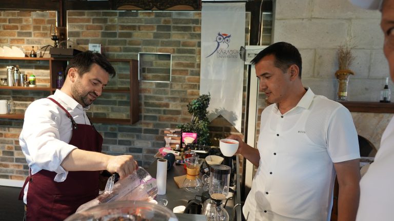 Safranbolu Turizm Fakültesi Gastronomi ve Mutfak Sanatları Bölümü Dr. Öğr. Üyesi İrfan Yurt ve Dr. Öğr. Üyesi Mustafa Yılmaz tarafından verilen eğitimde katılımcılar, kahvenin tarihinden başlayarak, kahve çekirdeklerinin nasıl seçildiği, kavrulduğu ve demlendiği konusunda detaylı bilgiler edindiler. Barista eğitmenleri eşliğinde uygulamalı eğitim alan Özbekistanlı akademisyenler, çeşitli kahve yapım tekniklerini öğrenerek kendi kahve lezzetlerini oluşturmayı deneyimlediler.