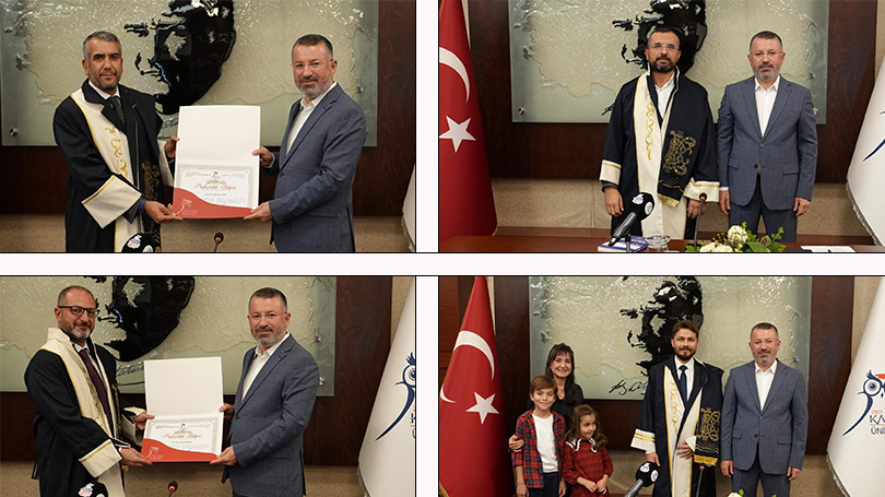 Karabük Üniversitesinde unvanda yükselerek Doçentlik ve Dr. Öğr. Üyesi kadrosuna atananlara cübbeleri giydirildi, profesörlük kadrosuna atanan akademisyenlere belgeleri teslim edildi. Rektör Prof. Dr. Fatih Kırışık, düzenlenen takdim töreninde üniversitede görev yapan 12 Doçent ve 9 Dr. Öğretim Üyesine cübbelerini giydirirken 8 Profesöre belgelerini takdim etti.