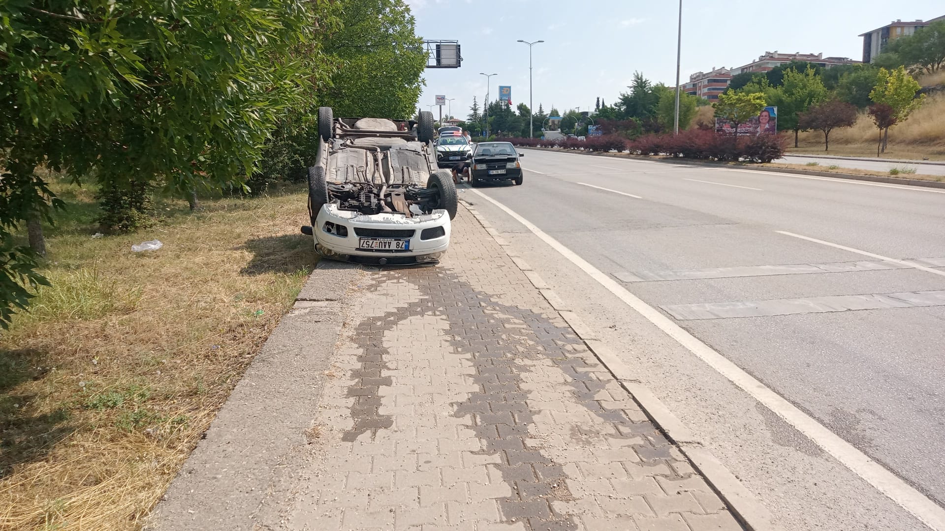 Edinilen bilgiye göre, siyah renkli bir otomobilin kaputu aniden açılması üzerine sürücü aracı sağ şeride yanaştırmak istedi. Bu sırada aynı istikamette seyreden beyaz renkli başka bir araç, sağa yanaşan otomobile çarptı. Çarpmanın etkisiyle beyaz araç takla atarak yol kenarına savruldu.
