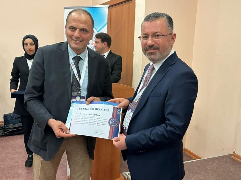 Etkinliğin ardından KAYFOR23 Düzenleme Kurulu Başkanı Prof. Dr. Hasan Yaylı, etkinliğe katılımlarından dolayı Karabük Üniversitesi Rektörü Prof. Dr. Fatih Kırışık’a teşekkür ederek, belge takdim etti.