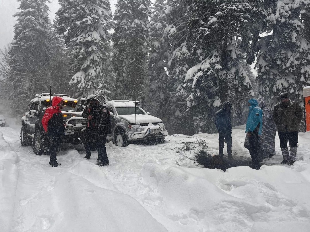 Safranbolu Sarıçiçek Yaylası’nda yoğun kar yağışı ve olumsuz hava şartları nedeniyle mahsur kalan 7 kişi, AFAD ekiplerinin çalışmasıyla kurtarıldı.