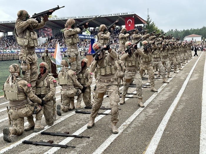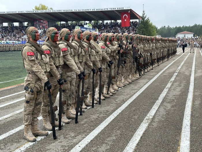 Eğitimi birincilikle tamamlayan askerin yaş kütüğüne plaket çakmasının ardından Tuğgeneral Ertekin ve Vali Vekili Muhittin Gürel, başarılı erlere belge ve hediye verdi. Törende, askerler gösteri yaptı, mehteran bölüğü konser verdi.
