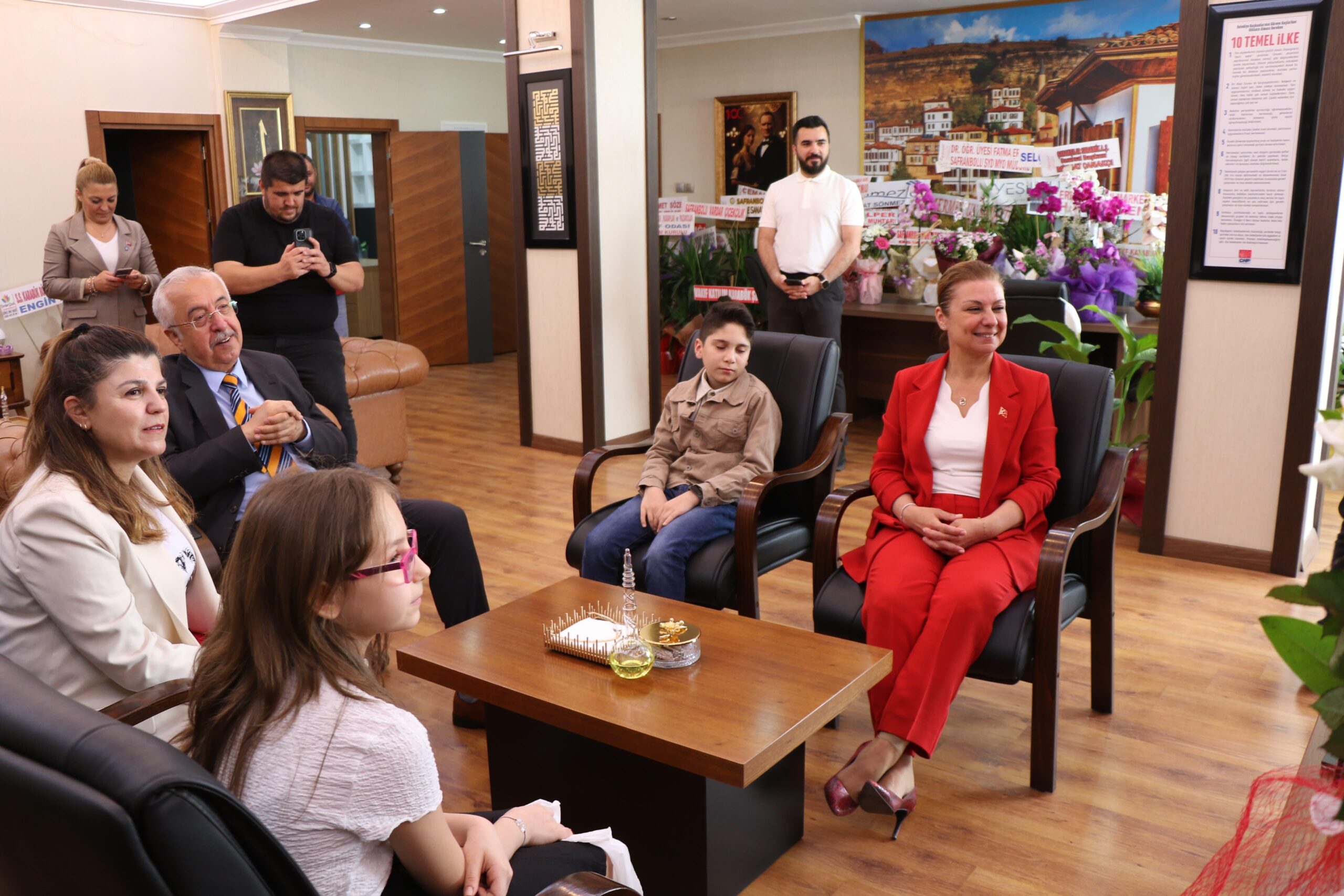 Safranbolu Belediye Başkanlığı makamında gerçekleşen program sonunda Zati Ağar İlkokulu Müdürü Nihat Albayrak, öğretmen Elif Yılmaz ve öğrenciler Yağmur Cebeci, Damla Özay, Mehmet Erdem Yılmaz Safranbolu Belediye Başkanı Mimar Elif Köse ile hatıra fotoğrafı çektirdi.