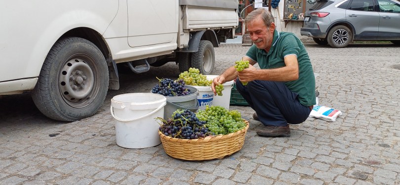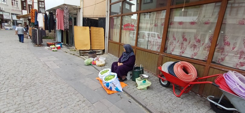 Navsaklar Köyü’nden satıcı Gülten Özenver, “Burada ne yapıyorsunuz?” sorusuna gülümseyerek yanıtlıyor: , “Kendi ürettiğimiz ürünleri satmaya geldik. Kendimiz üretiyoruz, kendimiz satıyoruz. Alıp satma filan değil, müşterimize buradan sağlıyoruz. Eşim emekli, yazın çalışıyoruz, kışın yatıyoruz. Bahçede yetiştirdiğimiz birçok çeşit ürünümüz var. Domates, patlıcan, biber, kabak… Fasulyelerim olmadı bu sene pek ama yerli karpuzum var. Fiyatlar Uygun; domatesin falan daha iyi para etmesi lazım ama etmiyor maalesef” dedi.