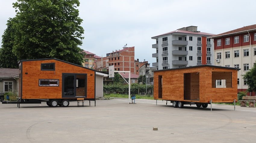 Öğrenciler, talep üzerine bir süre önce başladıkları bungalov üretiminin ardından mobilya ve iç mekan atölyesinde, araca monte edilebilen, taşınabilir ahşap ev imalatı da yapıyor. Üretim aşamasında yer alan 20 öğrenci, taşınabilir evi yaklaşık 20 günde tamamladı. Öğrenciler sipariş üzerine 20 ve 26 metrekarelik iki taşınabilir ev imal etti.