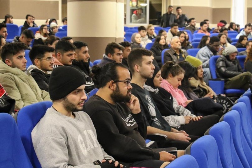 KBÜ Kariyer Uygulama ve Araştırma Merkezi tarafından Hamit Çepni Konferans Salonu‘nda etkinliğine akademisyenler ve öğrenciler katıldı. Milli Tekvandocu Kübra Dağlı, sporla hayatındaki güçlüklerle nasıl başa çıktığını, hedeflerine nasıl odaklandığını ve başarıya giden yolda dengeyi nasıl sağladığını öğrencilere aktardı. Kübra Dağlı, başarı hikayesini dış seslere karşı sağır olmak şeklinde belirterek, “Çünkü insanlar bir şeylere giriştiği zaman, bir şeyleri yapmak istediği zaman illaki o dış sesler ‘Sen yapamazsın, bu erkek sporu, kız sporu değil’ gibi sözler çok fazla geliyor. Ben bunlara hiçbir şekilde kulak asmadan yoluma devam etmemden ve hiçbir şekilde pes etmeyişimden bahsedeceğim. Zaten o şekilde başarılı oldum. Burada soru cevap üzerinden gideceğim. Çünkü insanların ne merak ettiklerini bilmiyorum. O yüzden onların merakını gidermek benim için daha önemli. Benim branşım hakkında bir şeyleri öğrenmelerini istiyorum” dedi.