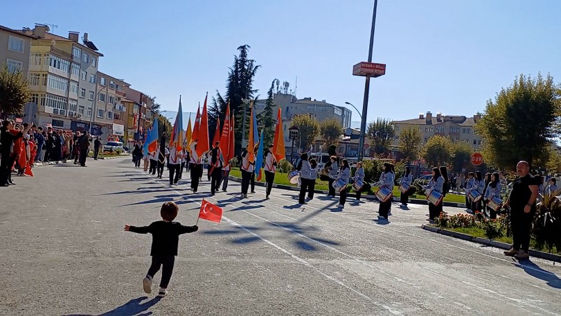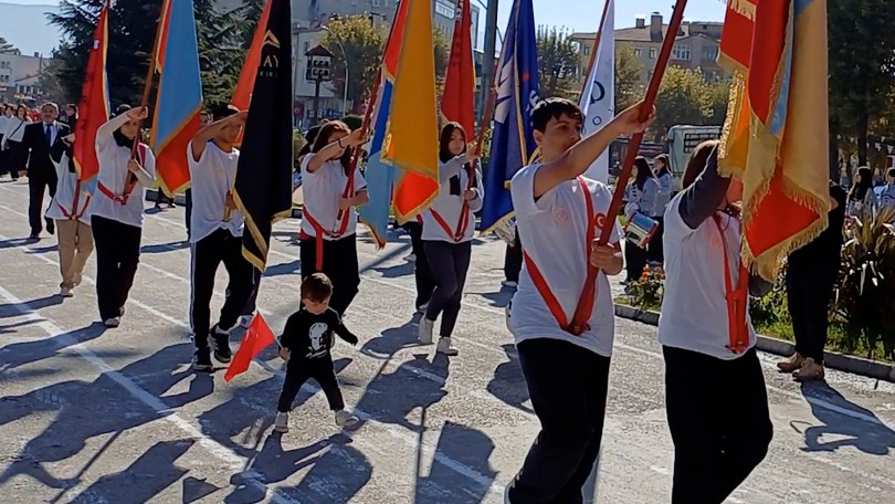 Tarihi Kent Safranbolu’da, Cumhuriyet’in 101. yaşının törenle kutlandığı günde sevimli Alpaslan’ın küçük yaşına rağmen gösterdiği coşku bayrama renk kattı. Katılımcıların ilgi odağı olan Alpaslan, elinde Türk bayrağı ile öğrenci abi ve ablalarının coşkusuna katıldı.