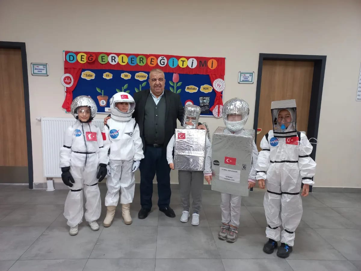 Astronot kılığında ilk Türk Astronotumuz Alper Gezeravcı canlandırması yaptılar. Okuldaki