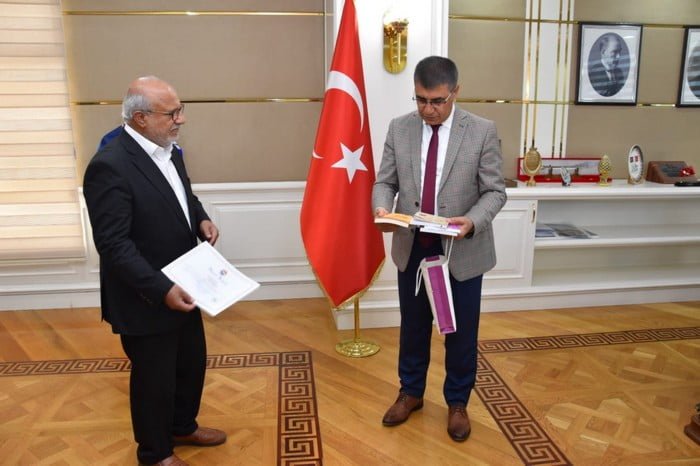 Mahmut Emin ise Vali Gürel’e kendi yazmış olduğu kitaplarını hediye etti ve iyi dileklerinden dolayı Vali Gürel’e teşekkür etti.