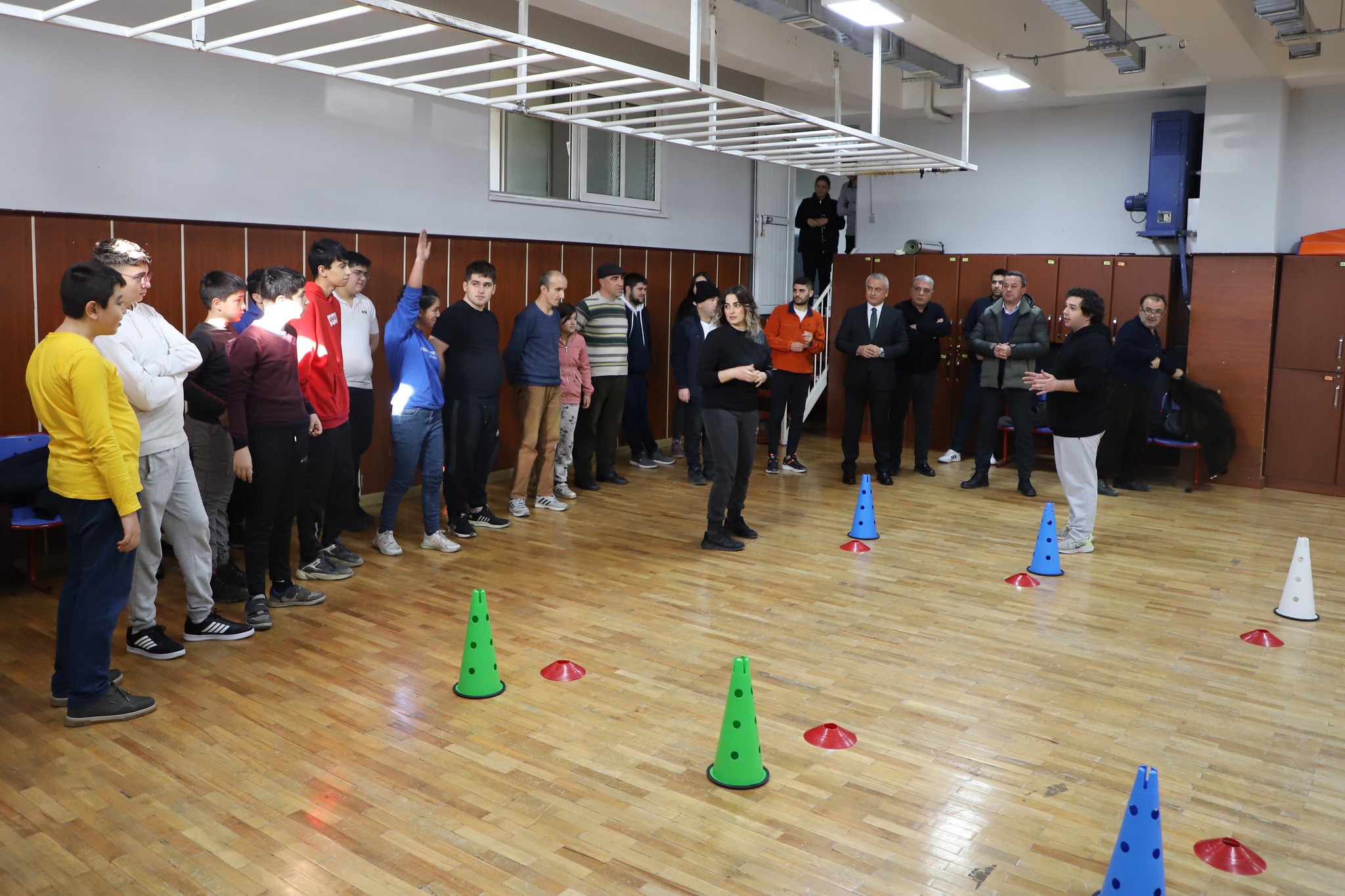 Projeyi ziyaret eden Gençlik ve Spor İl Müdürü Coşkun Güven beraberinde Spor Hizmetleri Müdürü İsmail Özcan ve Şube Müdürü Lokman Mollaoğulları öğrencilerle sohbet ederek, projede emeği geçen herkese teşekkür etti ve başarılar diledi.