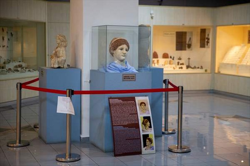 Ulutürk, kadın başı heykelinin “ganosis” (mermer heykellerin boyalı ya da düz yüzeylerinin korunması için uygulanan cilalama yöntemi) tekniğiyle renklendirildiğini dile getirerek şöyle devam etti: