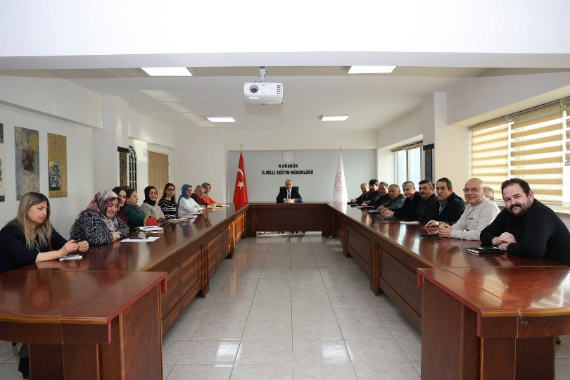 Karabük İl Millî Eğitim Müdürü Nevzat Akbaş, il müdürlüğü şube ve birim şefleri ile 8 Ocak 2025 Çarşamba günü saat 10.30’da Müdürlüğün toplantı salonunda bir araya geldi. Toplantıda, Bakanlığın eğitim politikaları, kanun, mevzuat ve yönetmeliklerin takibi, resmi yazışmalar, kurum içi iletişim, yeni personel yetiştirme süreçleri, halkla ilişkiler ve hizmet standartları gibi önemli konular ele alındı.