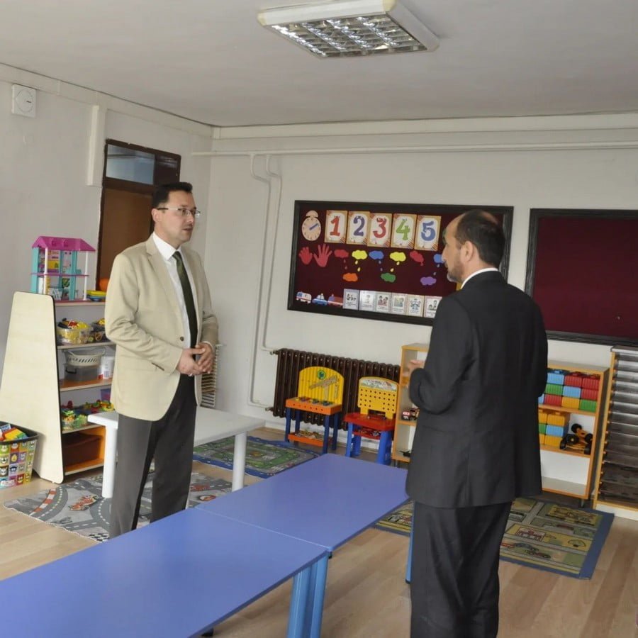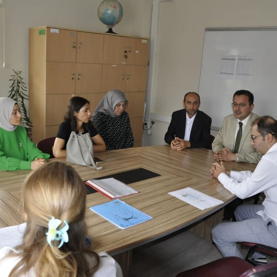 Öğretmenler odasında öğretmenlerle de bir araya gelen İlçe Milli Eğitim Müdürümüz yeni eğitim öğretim yılının hayırlı olması temennisiyle öğretmenlerimize başarılar diledi.