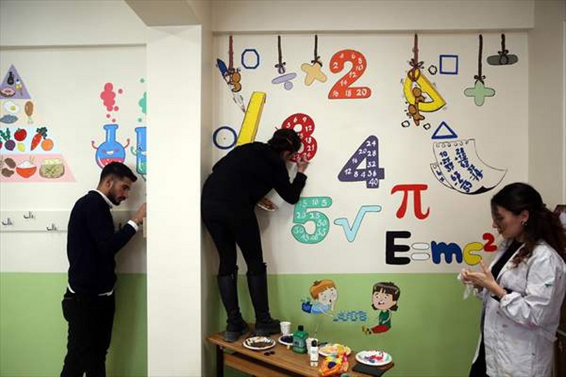 “Çocuklarla ilgili bir projem olsun, onların kalbine dokunan, mutluluğuna ortak olan bir proje olsun istedim. Güzel Sanatlar Fakültesi’ndeki arkadaşlarla sohbet ederken onlara projemden bahsettim. Onlar da çocuklarla ilgili resim çizelim ama onların istediği şeyler olsun dediler. Öğrenciler sınıfını hayal etti. Biz de duvarları onların hayalinde olduğu gibi resmetmeye başladık. Öğrencilerin hayal ettiği sınıfı arkadaşlarımızla birlikte oluşturduk.”