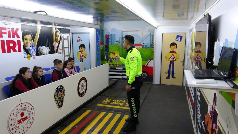 EGM Trafik Başkanlığı’nda görevli Polis Memuru Hakan Köroğlu, mobil trafik eğitim tırının anaokulu ve ilkokulu çağındaki çocukları güvenli trafiğe hazırlamak amacıyla 81 ili gezdiğini belirtti.