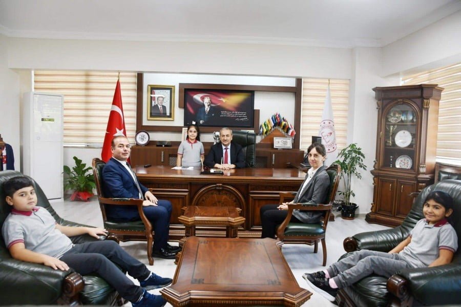 Okul Müdürü Ahmet Çimen ve Sınıf Öğretmeninin de eşlik ettiği ziyarette talep ve dileklerini dinleyen İl Millî Eğitim Müdürü öğrencilerimizin yeni eğitim-öğretim yılını kutlayarak güzel hediyeleri için teşekkürlerini sundu.