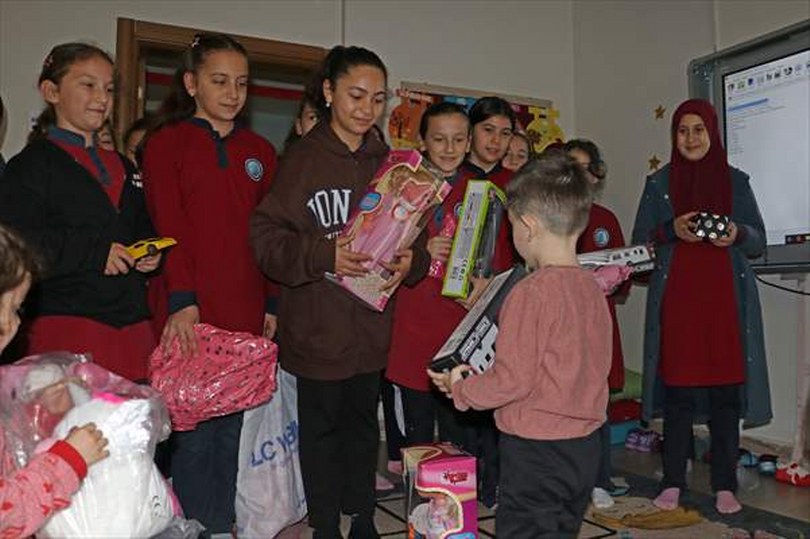 Ortaokul öğrencileri, oyuncakları miniklere vererek mutlu olmalarını sağladı.