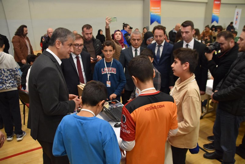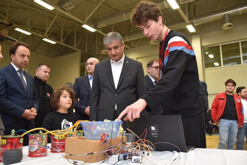 Vali Yavuz projeleri inceleyerek, öğrencilerden çalışmaları hakkında bilgi aldı.