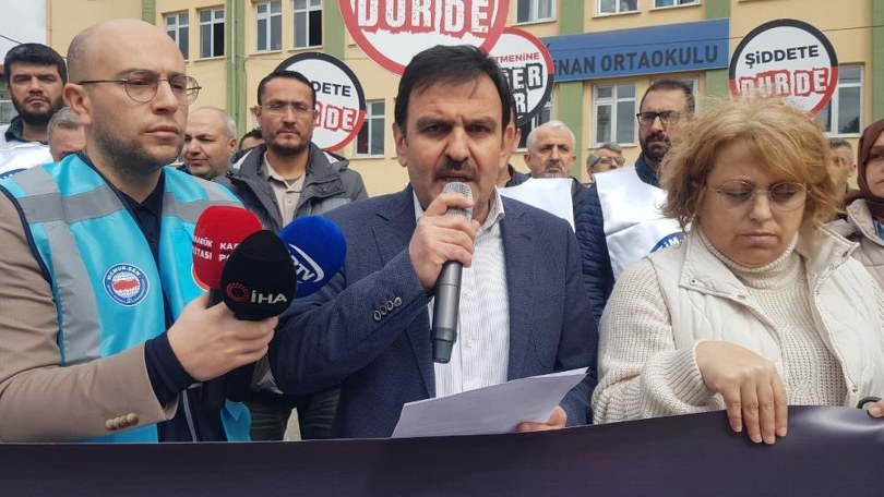Yaşanan olay sonrası okula giden Eğitimciler Birliği Sendikası Şube Başkanı Zeki Öz, basın açıklaması yaparak, duruma tepki gösterdi.