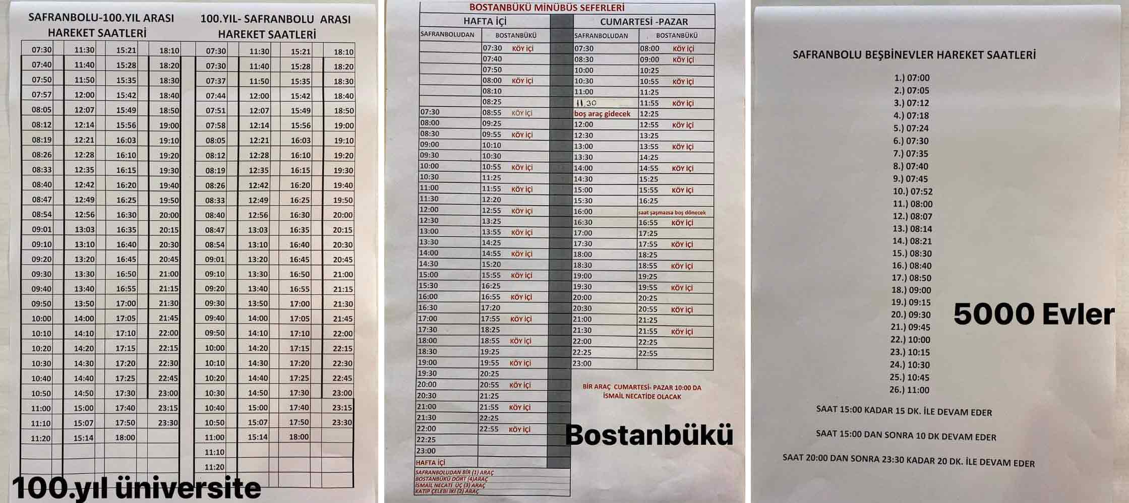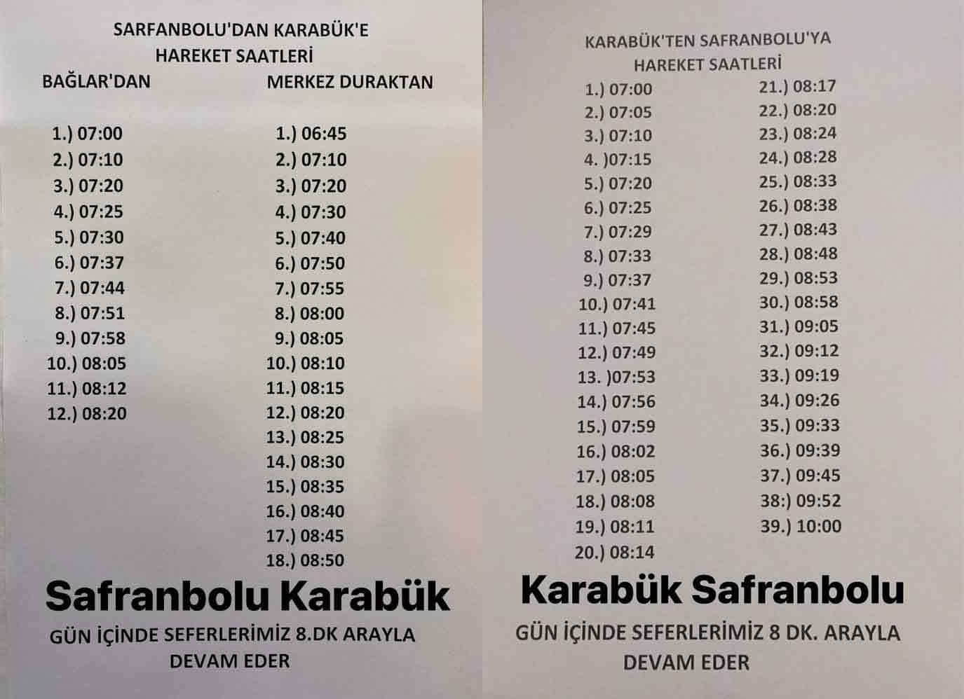 Minibüscüler kooperatifi başkanı Aydın Yavuz, sosyal medya hesabından duyurduğu minibüs saatleri şöyle;