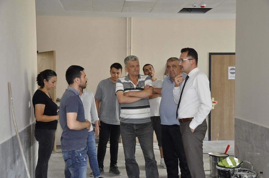 Yazıköy İlkokulunda ve Ortaokulu ile Bağlar İlkokulu yapım aşamalarında ve gelinen son durum hakkında incelemede bulunan İlçe Millî Eğitim Müdürümüz, burada yüklenici firma yetkililerinden bilgi aldı.