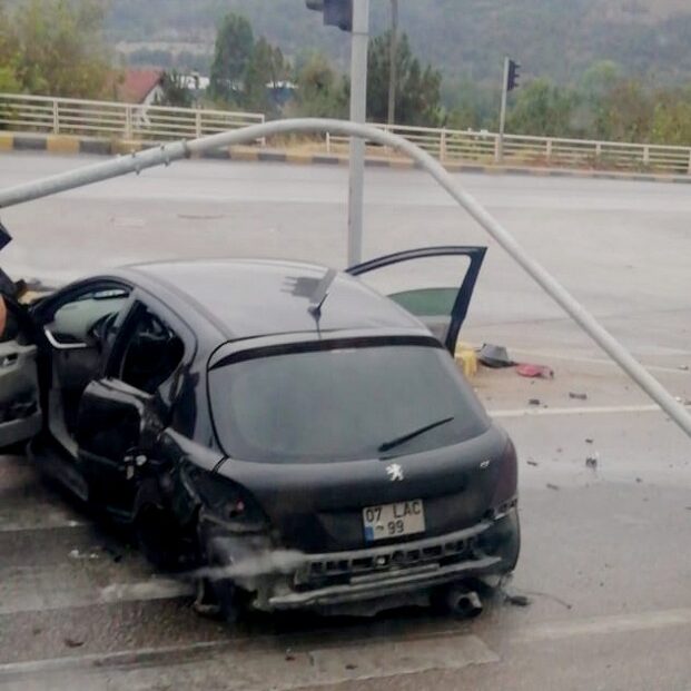 Karabük-Safranbolu kara yolunda Z.Y. idaresindeki 07 LAC 99 plakalı otomobil, Sanayi kavşağında sürücüsünün direksiyon hakimiyetini kaybetmesiyle önce trafik lambasına ardından önündeki 78 ED 930 plakalı panelvana çarptı. Çarpmanın etkisiyle trafik lambası yola devrildi.