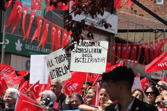 Saygı duruşu ve İstiklal Marşı’nın okunmasıyla başlayan programda Mansur Yavaş, ‘Sevgili Karabüklüler’ diyerek konuşmasına başlayarak “İnşallah bu seçimin vatanımıza milletimize ülkemize hayırlı olmasını dilerim.” dedi.