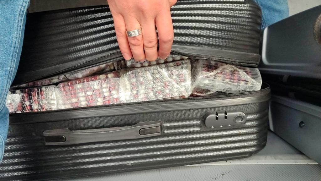 Aramada, bavulların içinde uyuşturucu nitelikli 34 bin 650 sentetik ecza hapı ele geçirildi.