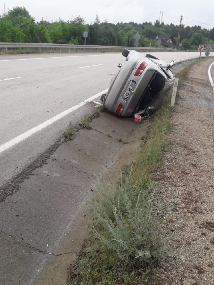 Edinilen bilgiye göre, Kastamonu istikametinden Karabük istikametine giden A.K (47) yönetimindeki 06 BE 9479 plakalı otomobil, yağmur nedeniyle kayganlaşan yolda sürücüsünün direksiyon hakimiyetini kaybetmesi sonucu su kanalına devrildi.