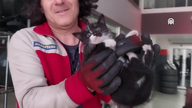 Aracın motor kısmına sıkıştığı belirlenen kedi yavrusu, iş yeri çalışanları tarafından kurtarıldı.