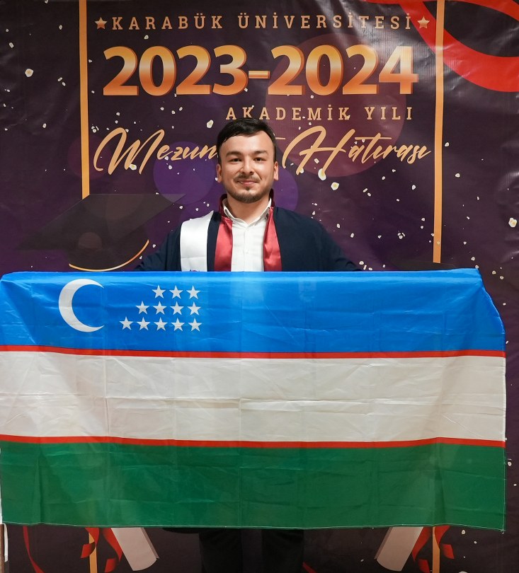 Karabük Üniversitesinin sunduğu fırsatları en iyi şekilde değerlendirerek başarılı bir öğrenci profili çizen Sirojiddin Fatkhiddinov, Prof. Dr. Sadettin Ökten Konferans Salonunda düzenlenen törende başarı belgesini alarak mezuniyet coşkusunu yaşadı.