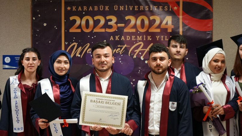 Karabük Üniversitesi Safranbolu Turizm Fakültesinden 65 öğrenci, 2023-2024 Eğitim-Öğretim Yılında mezuniyet heyecanı yaşadı. Özbekistanlı Sirojiddin Fatkhiddinov, eğitim gördüğü Safranbolu Turizm Fakültesinin birincisi olarak mezun oldu.