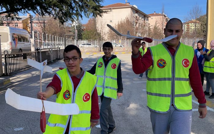Özel öğrencilerden Abdulsamet Külçe, “Daha önce hiç uçağa binmedim. Uçaklarımız güzel oldu. Yaptığımız uçakları arkadaşlarla hep beraber uçuruyoruz.” dedi.