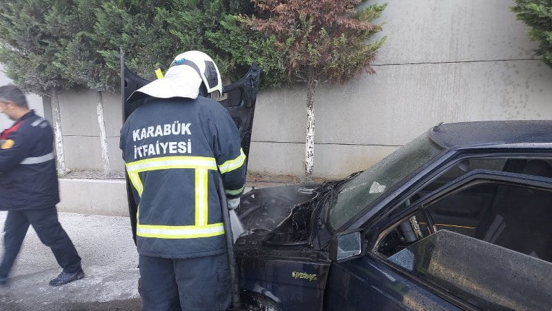 Özel bir hastanenin önünde park halindeki 78 SR 215 plakalı otomobilde, henüz belirlenemeyen nedenle yangın çıktı.