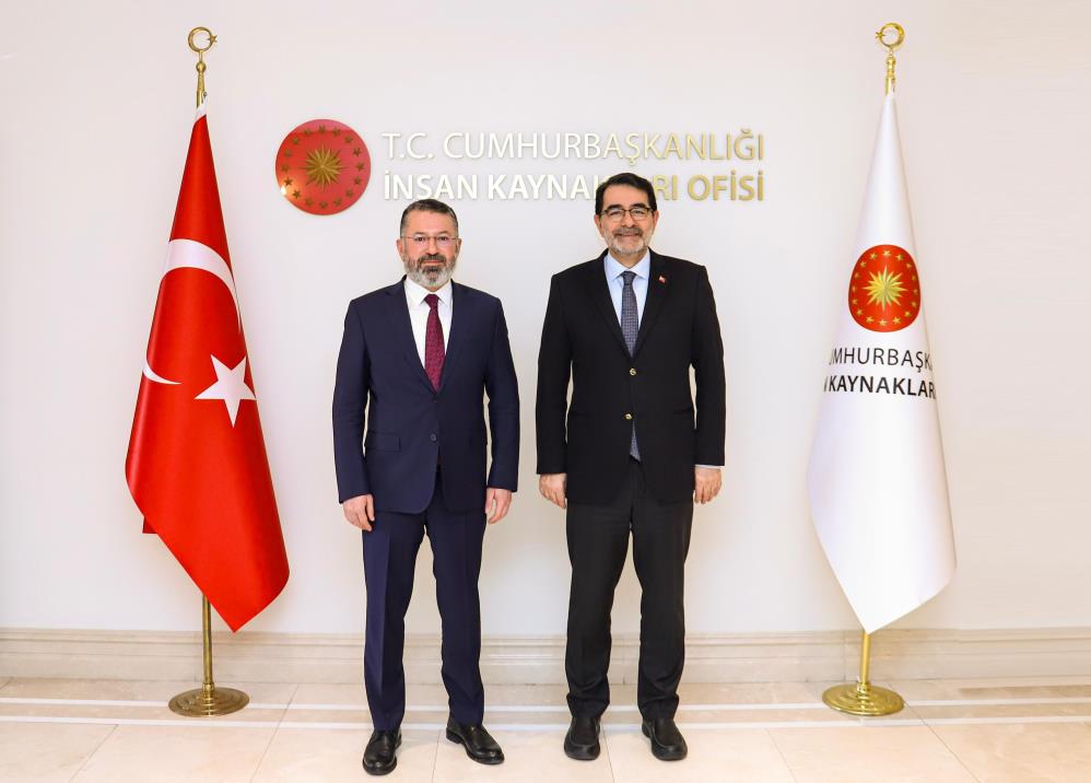Cumhurbaşkanlığı İnsan Kaynakları Ofisi Başkanı Doç. Dr. Salim Atay ise iki kurum arasında yapılabilecek ortak çalışmalardan söz ederek, Türkiye’nin vizyonu, hedefleri ve öncelikleri doğrultusunda insan kaynağının geliştirilmesini sağlamaya yönelik projeler üretmek konusundaki iş birliğine vurgu yaptı.