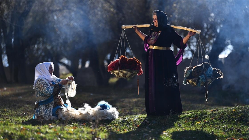 İlkbaharda kırkılan koyunlardan elde edilen yünleri toplayıp yıkayan kadınlar, bu yünleri çeşitli işlemlerden geçirerek ipliğe dönüştürüyor.