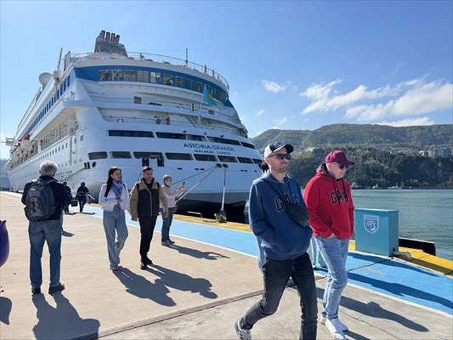 İşlemleri tamamlanan turistlere, liman çıkışında Rusça broşürler verildi.