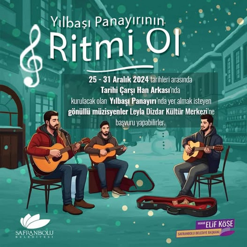 “Ben de ritmimle varım” diyen gönüllü müzisyenlerin başvuruları için Safranbolu’nun kültürel merkezlerinden biri olan Leyla Dizdar Kültür Merkezi‘ne davet ediliyor. Panayır boyunca sahne alacak müzisyenler, tarihi sokaklarda unutulmaz bir yılbaşı atmosferi oluşturacak.