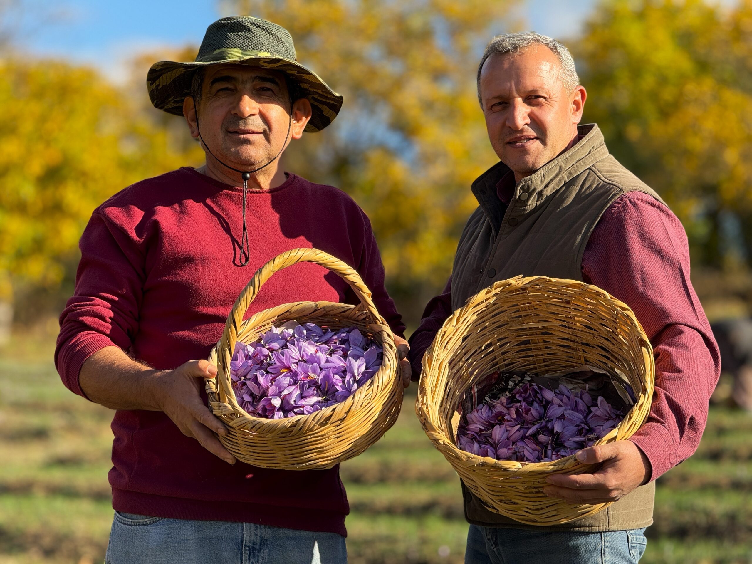 Avrupa Birliği’nce coğrafi işaretle tescillenen ‘milli bitki’nin çiçekleri işçiler tarafından özenle toplanıyor. Toplanan ve tek tek ayıklanan safranın 80 bin çiçeğinden sadece yarım kilogram ürün elde ediliyor.